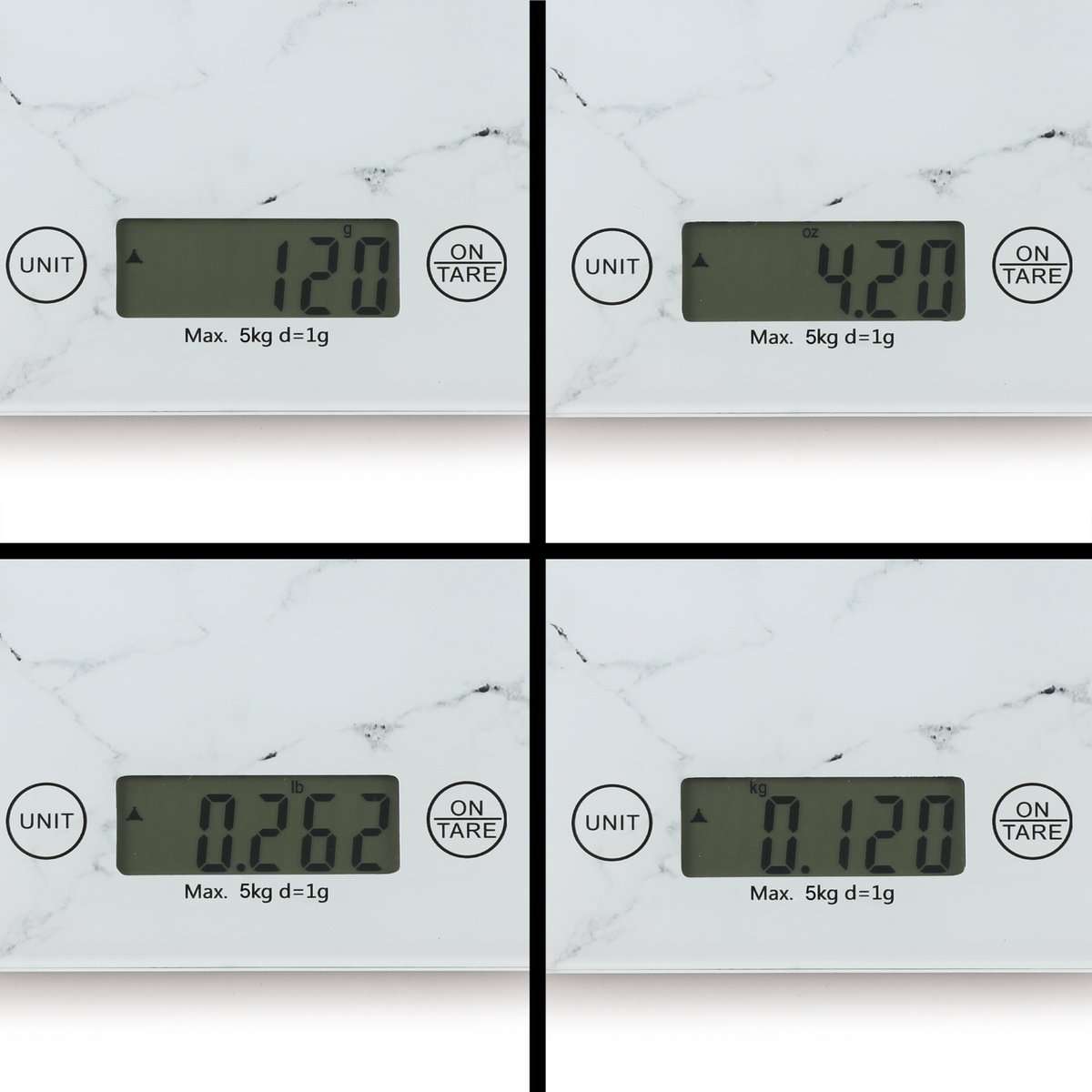Mit der digitalen Küchenwaage Glas wird Präzision zum stilvollen Erlebnis. Diese elegante Waage vereint modernes Design „Marmor“ mit höchster Funktionalität und macht das Abwiegen deiner Zutaten zu einem Moment purer Freude. Ob du feine Backkreationen zauberst, frische Zutaten für dein Lieblingsgericht vorbereitest oder einfach Wert auf Genauigkeit legst – diese Waage ist dein perfekter Küchenhelfer.
