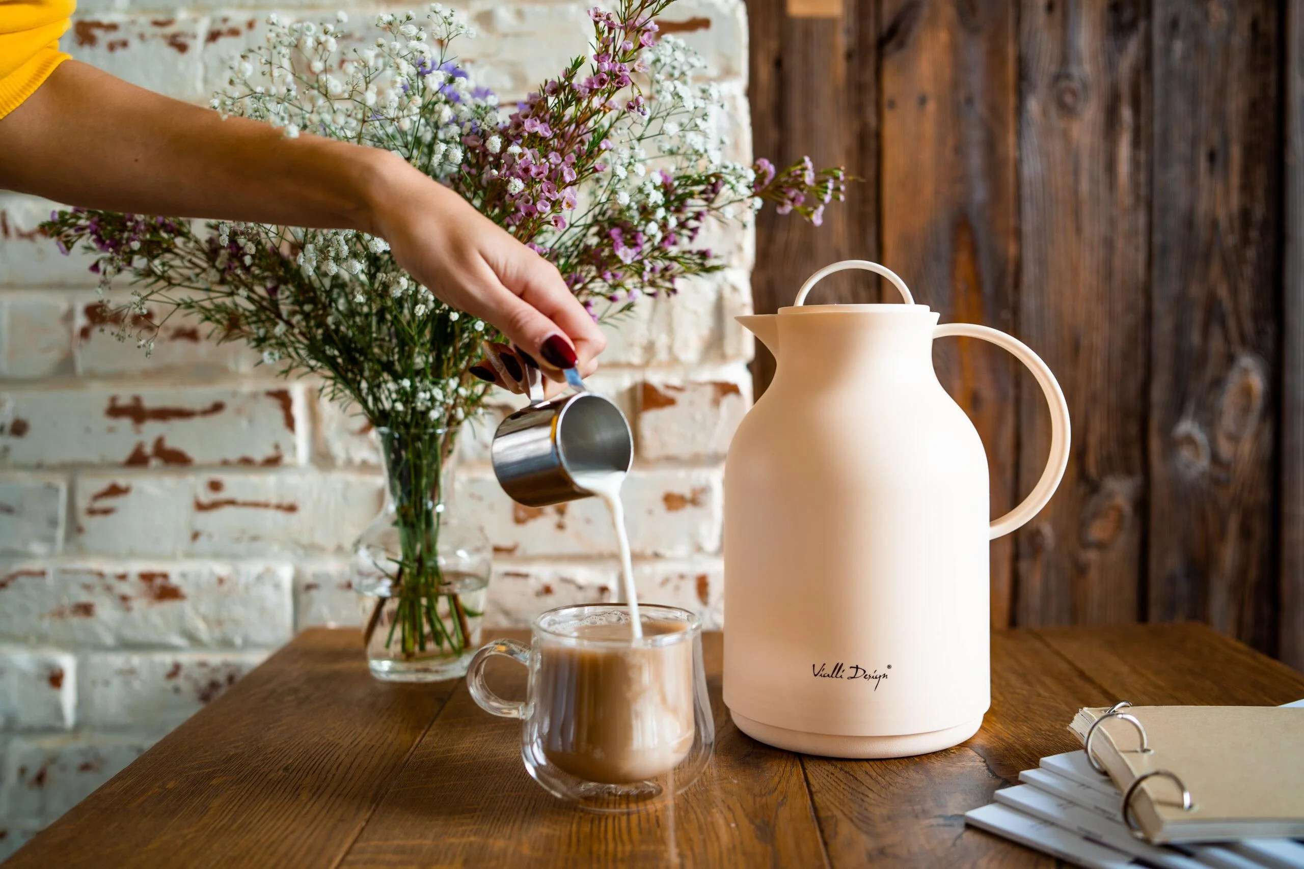 Ob in elegantem Creme oder klassischem Schwarz – diese Thermoskanne verbindet zeitloses Design, hochwertige Materialien und hervorragende Isolierleistung. Sie ist in den 2 Farben creme und schwarz erhältlich. Gönn dir den Komfort, dein Lieblingsgetränk immer in perfekter Temperatur genießen zu können – wo und wann du willst.