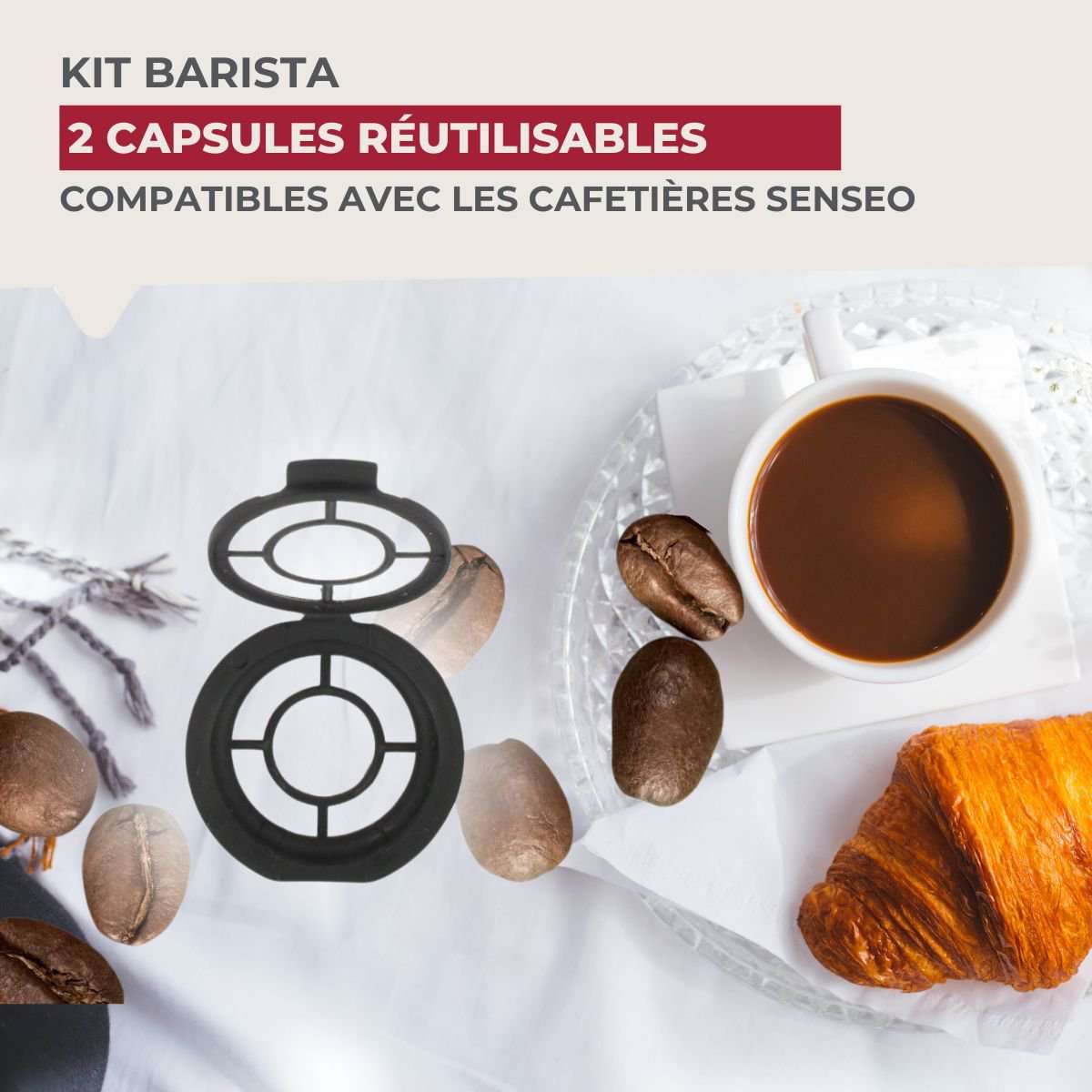 Ein 2er Set wiederverwendbare Kaffeekapseln für Espressomaschinen in Kapselform. Sie sind wiederverwendbar und mit der Senseo Maschine kompatibel. Aus hochwertigem Thermoplast.